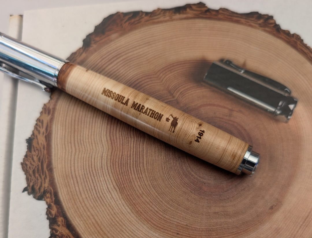 Handcrafted wooden pens customized with your birth, anniversary, or other important year. Each year of special significance inscribed on your pen (for example; your birth or anniversary year) corresponds to the year the wood formed in the tree used to craft that pen. Select a fine wooded rollerball, fountain, or ballpoint pen. Corporate gift pens can be ordered with your logo engraved. The century of tree ring history in every pen tells a story that inspires us to appreciate time.